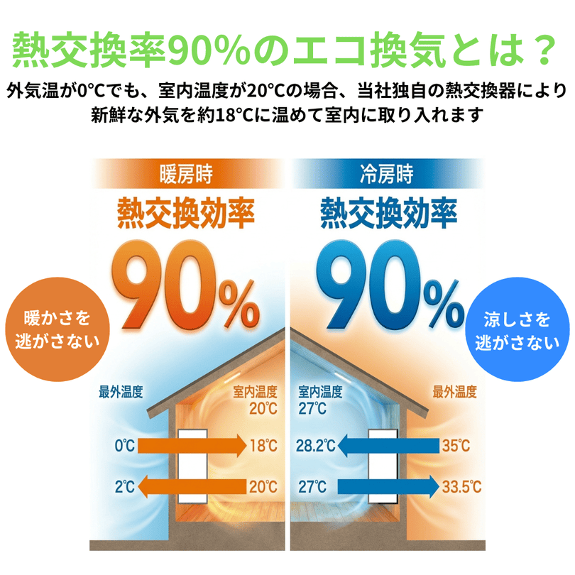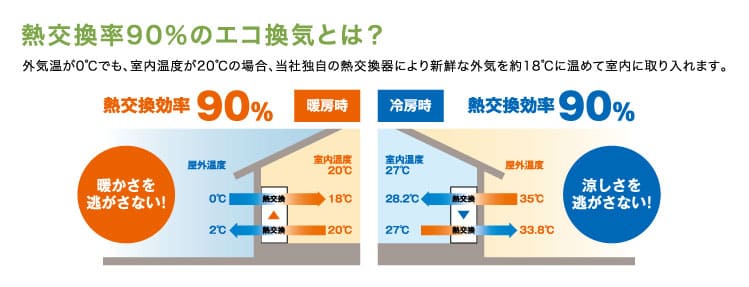熱交換率90%のエコ換気